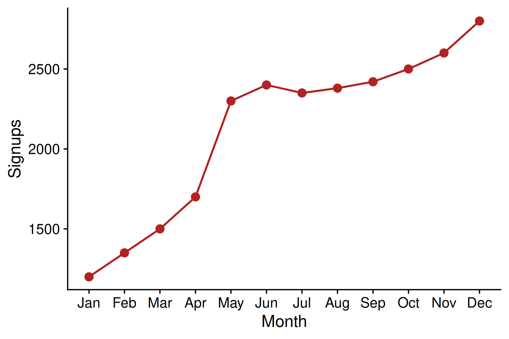 Line chart of monthly signups in 2025