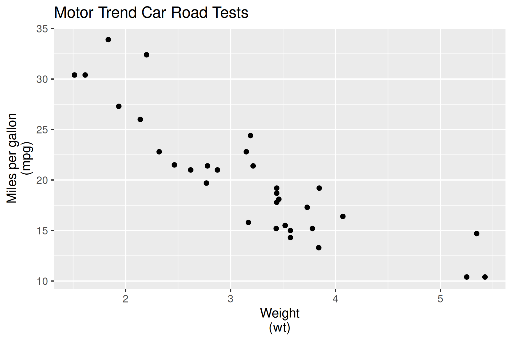 \[\texttt{mpg}_i = \beta_0 + \beta_1\texttt{wt}_i + e_i\]
